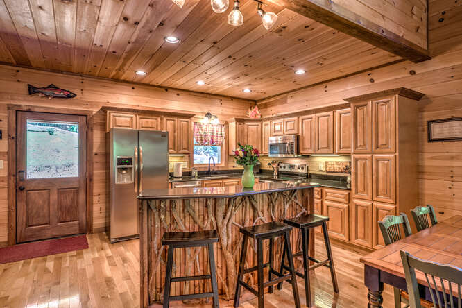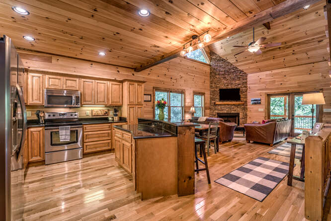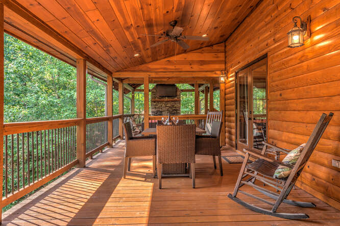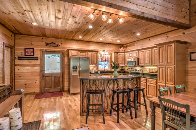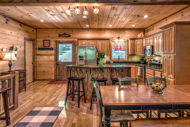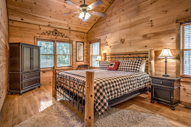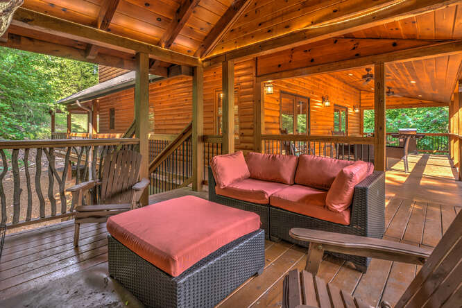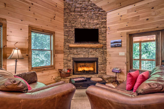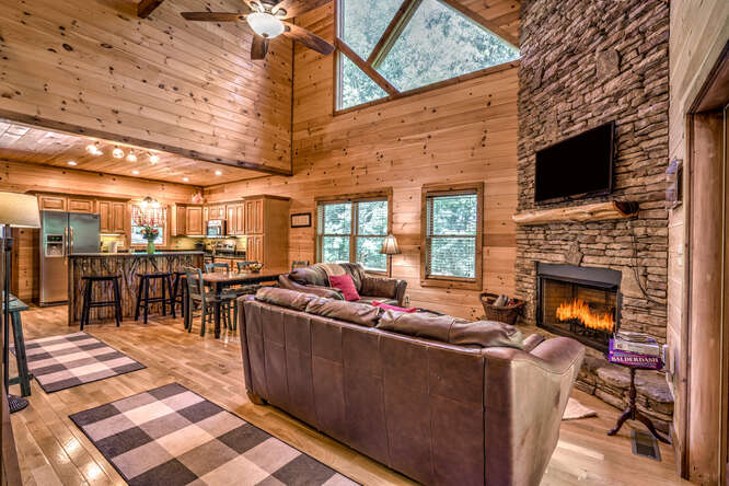 This is a 5 bedroom, 3.5 bath cabin (sleeps up to 10) that can accommodate larger groups and families. Bring the family and all the friends to this spacious stylish cabin with plenty of space for everyone. All roads are paved for your drive to this quaint gated neighborhood. Private secluded backyard with outdoor fireplace and hot tub. Enjoy a short walk to Toccoa River access point or a short 5 minute drive to downtown Blue Ridge, ten minute drive to McCaysville. Hiking, whitewater rafting, horseback riding, zip lining all within minutes from the cabin.