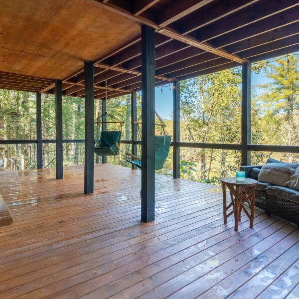 Ready for your Mountain Escape!?! The Overlook is a 4 bedroom 3 bath spacious stylish cabin situated on Fightingtown Creek minutes from Blue Ridge and McCaysville. The Overlook has room for everyone! Fully equipped kitchen, 2 fire places, wrap around porches, plenty of parking, fire pit, hot tub and outdoor space galore! Bring the Anglers – trout fishing is amazing here The Overlook sits on a bend on the creek perfect for fishing, floating, wading and swimming or listening to the falls.