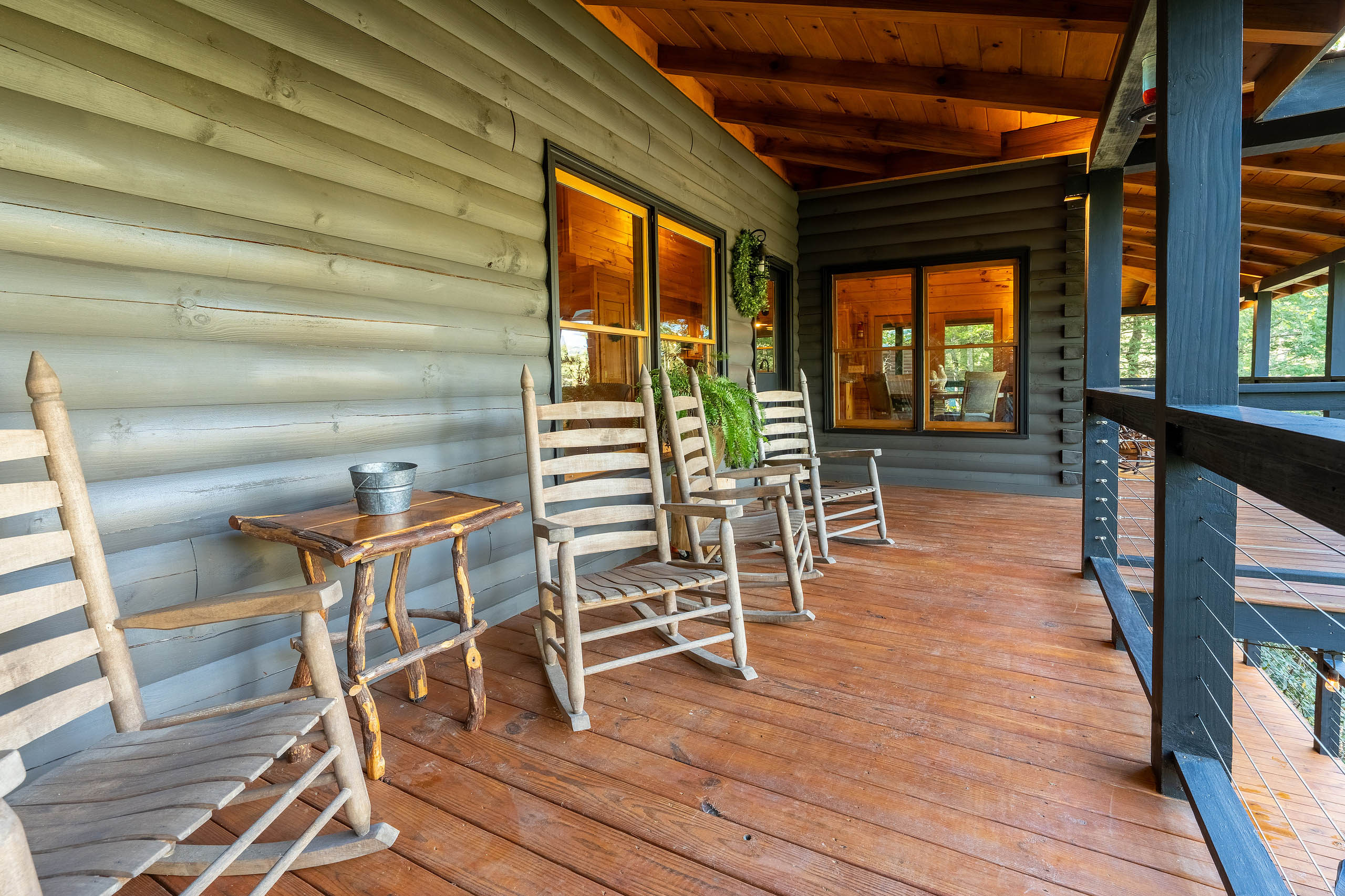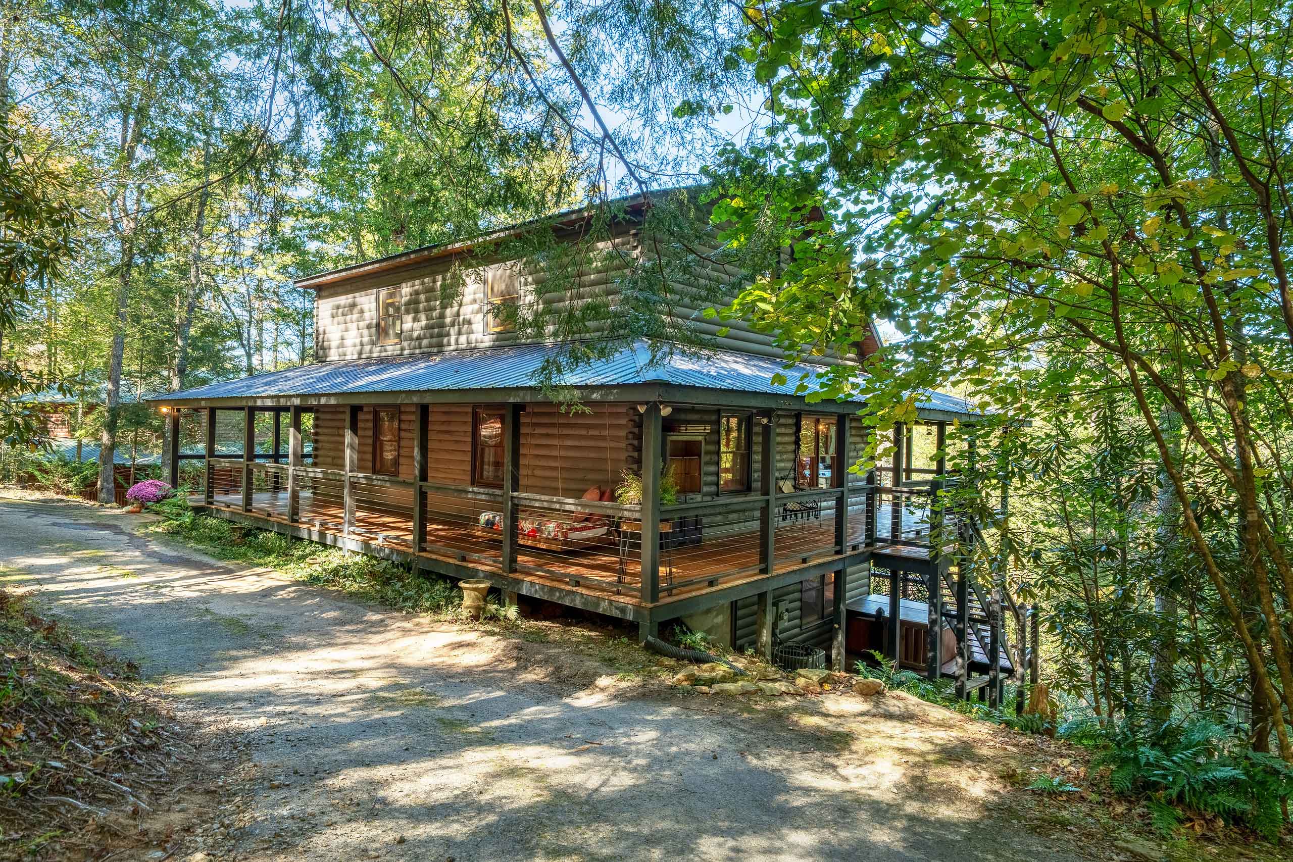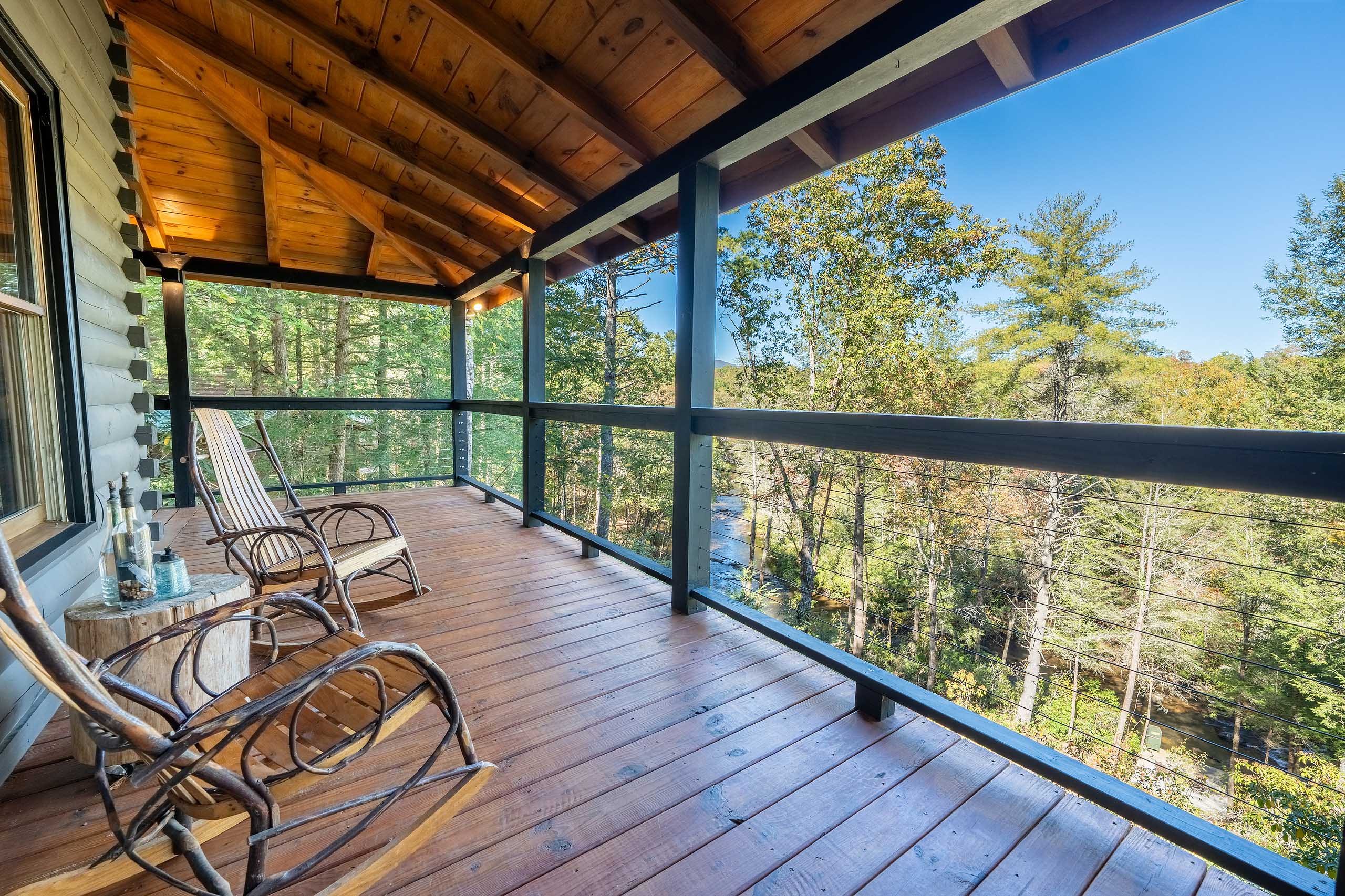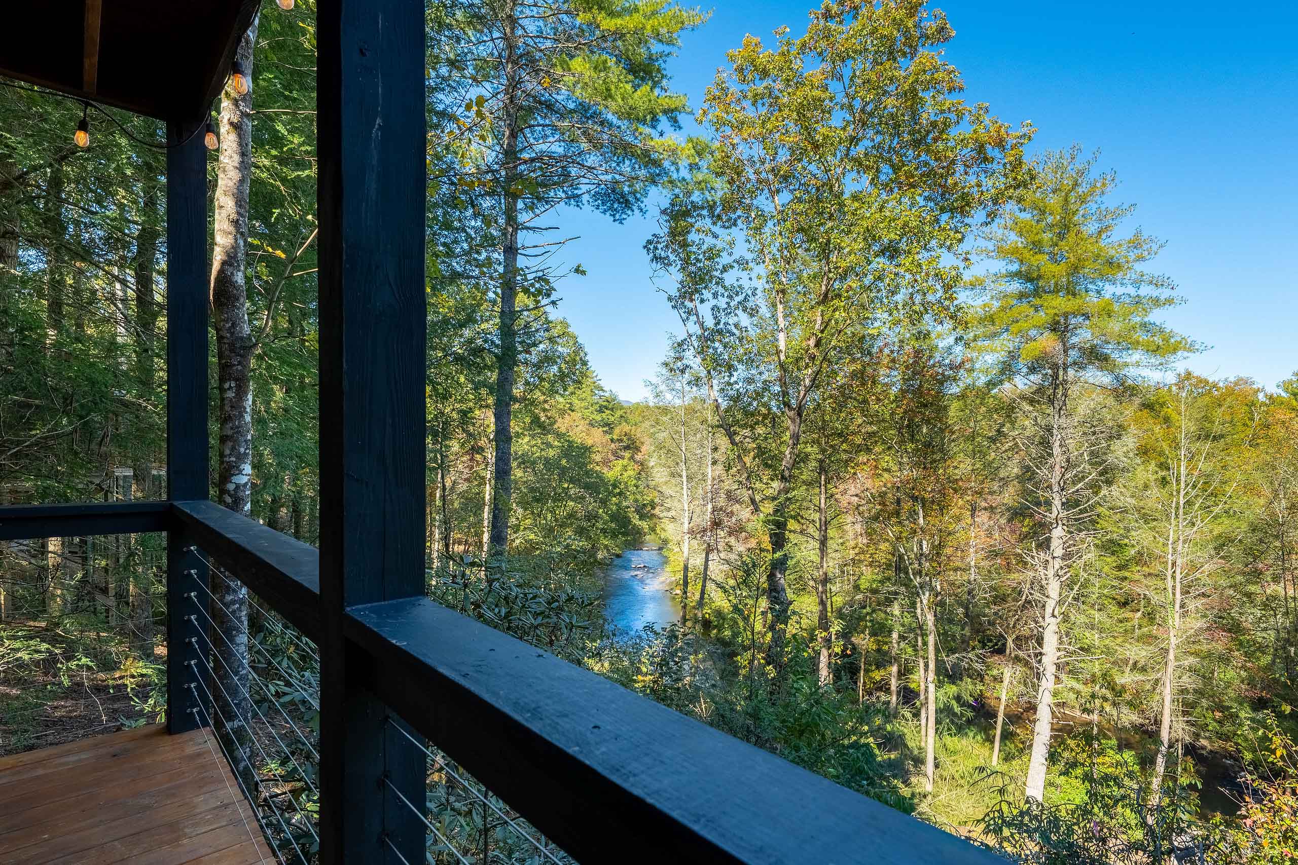 Ready for your Mountain Escape!?! The Overlook is a 4 bedroom 3 bath spacious stylish cabin situated on Fightingtown Creek minutes from Blue Ridge and McCaysville. The Overlook has room for everyone! Fully equipped kitchen, 2 fire places, wrap around porches, plenty of parking, fire pit, hot tub and outdoor space galore! Bring the Anglers – trout fishing is amazing here The Overlook sits on a bend on the creek perfect for fishing, floating, wading and swimming or listening to the falls.