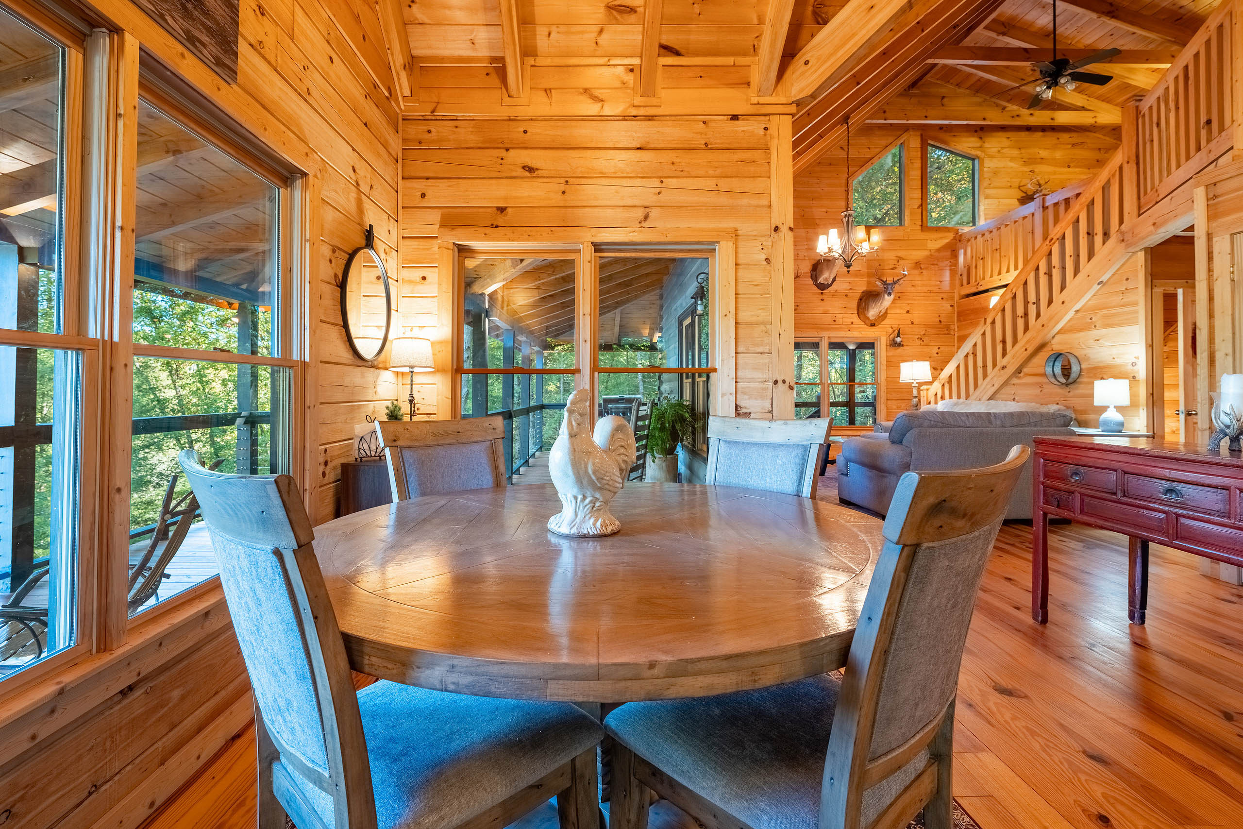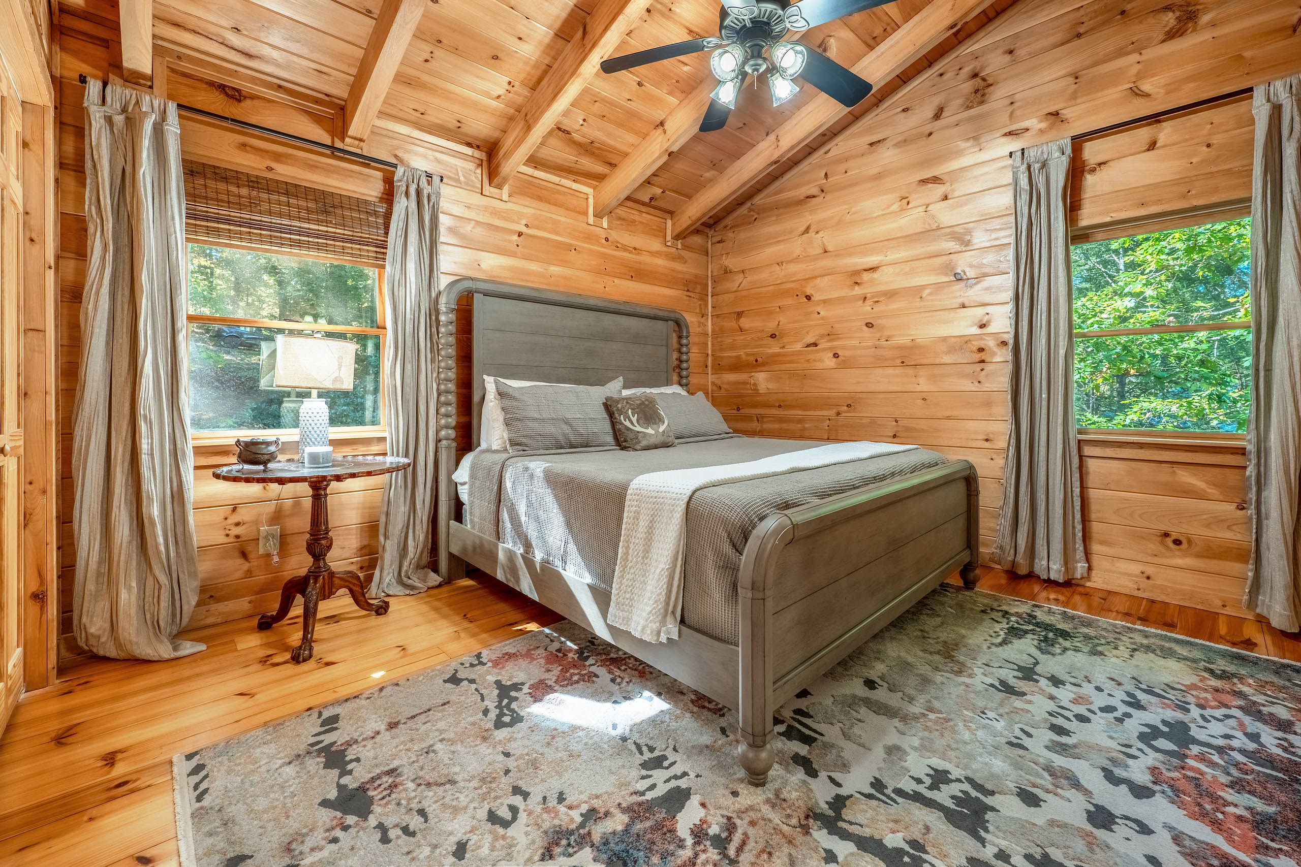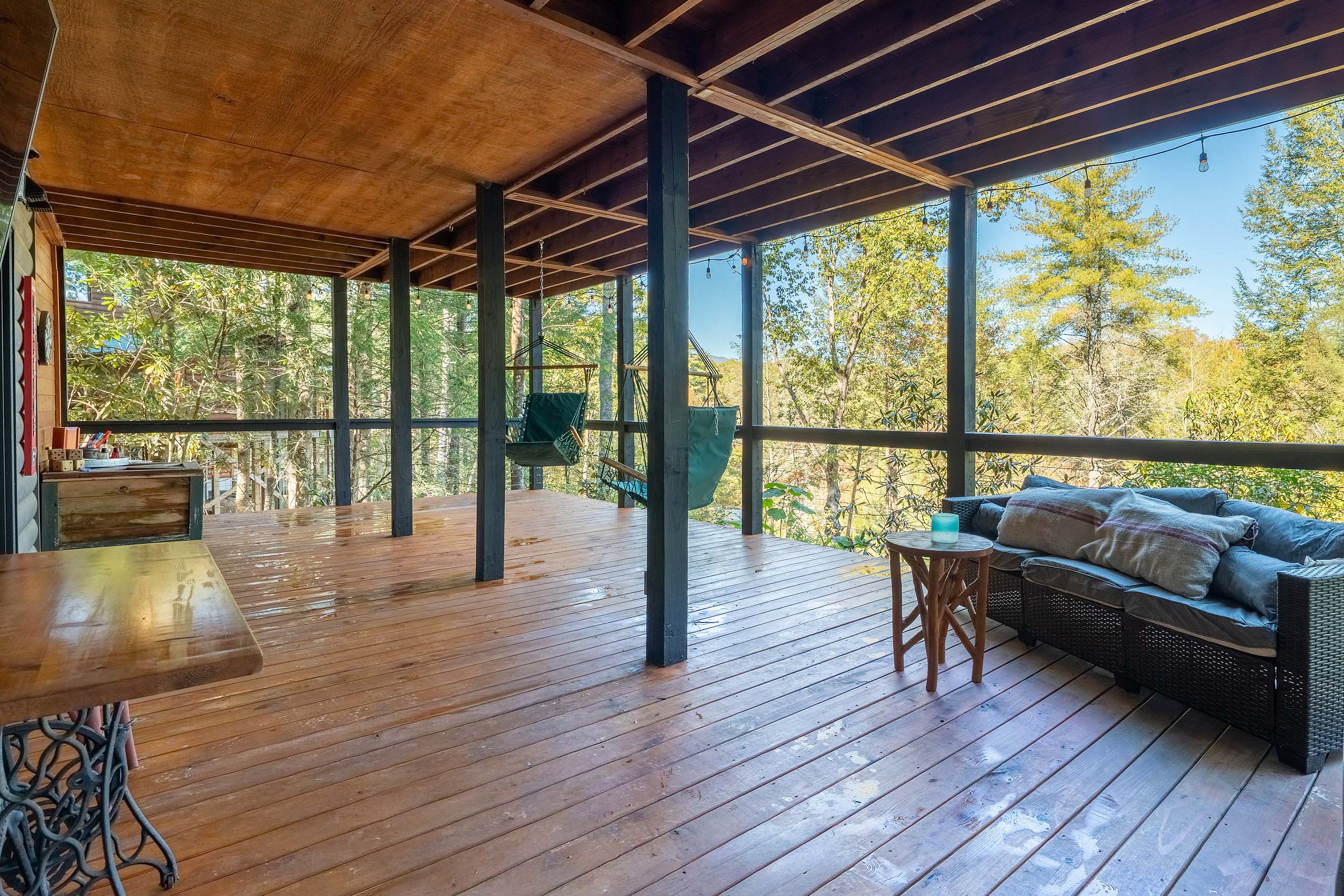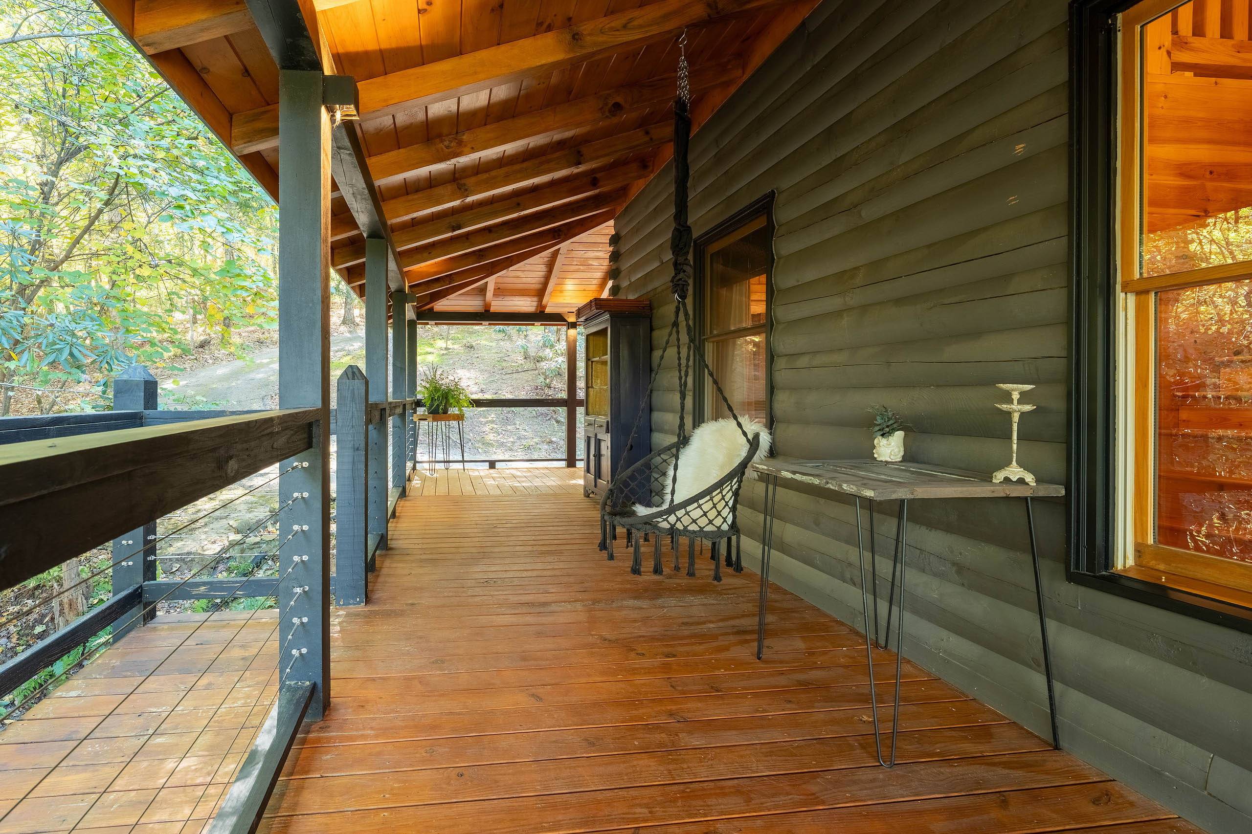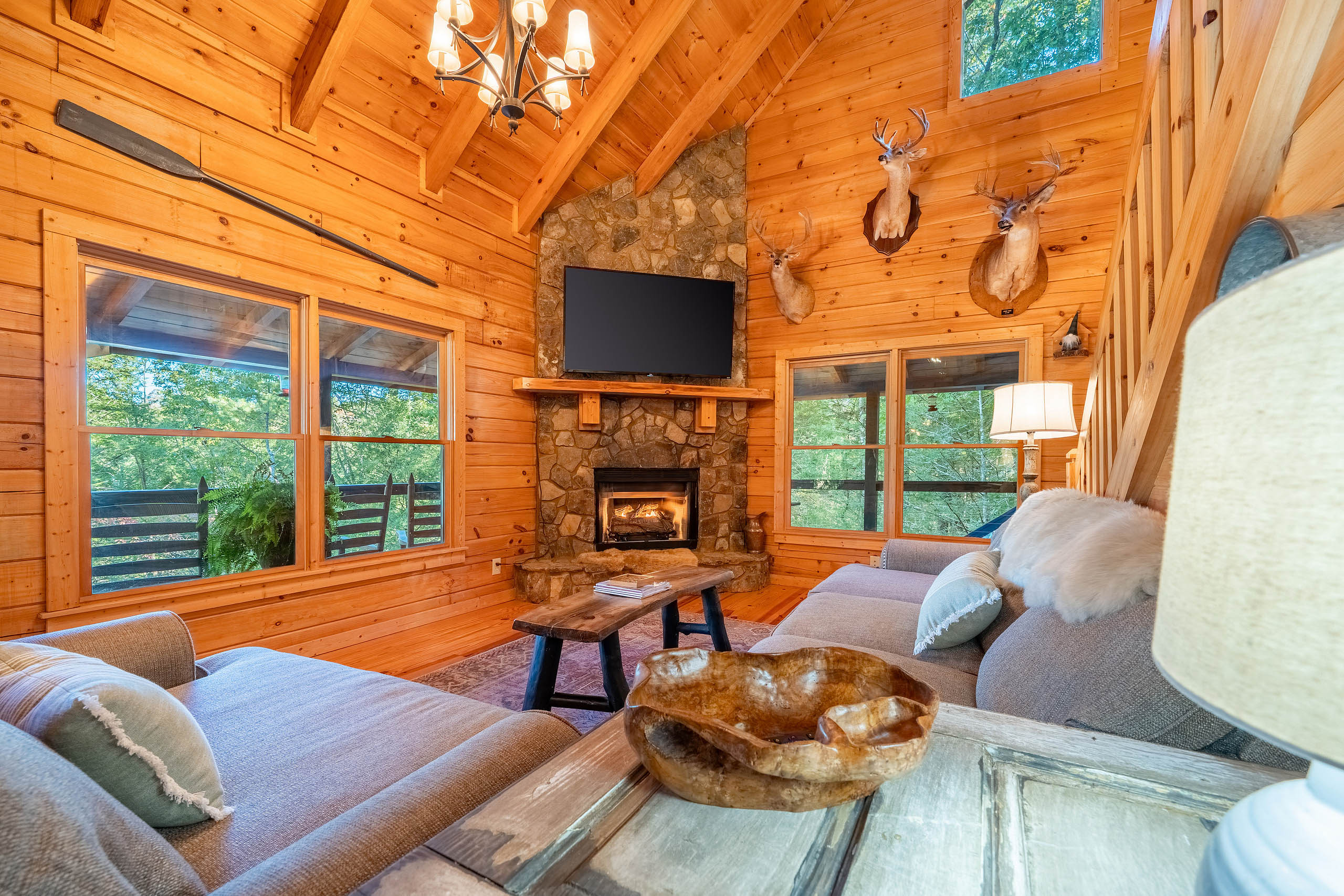 Ready for your Mountain Escape!?! The Overlook is a 4 bedroom 3 bath spacious stylish cabin situated on Fightingtown Creek minutes from Blue Ridge and McCaysville. The Overlook has room for everyone! Fully equipped kitchen, 2 fire places, wrap around porches, plenty of parking, fire pit, hot tub and outdoor space galore! Bring the Anglers – trout fishing is amazing here The Overlook sits on a bend on the creek perfect for fishing, floating, wading and swimming or listening to the falls.