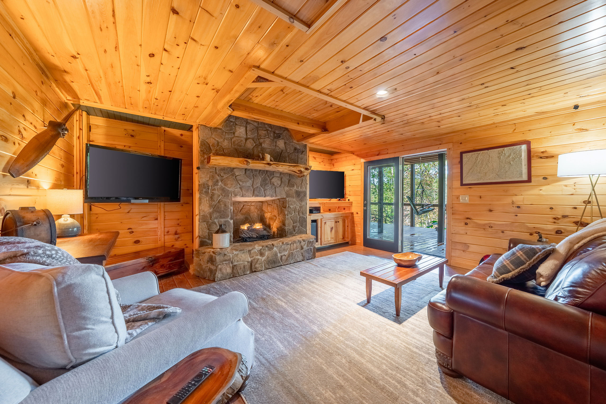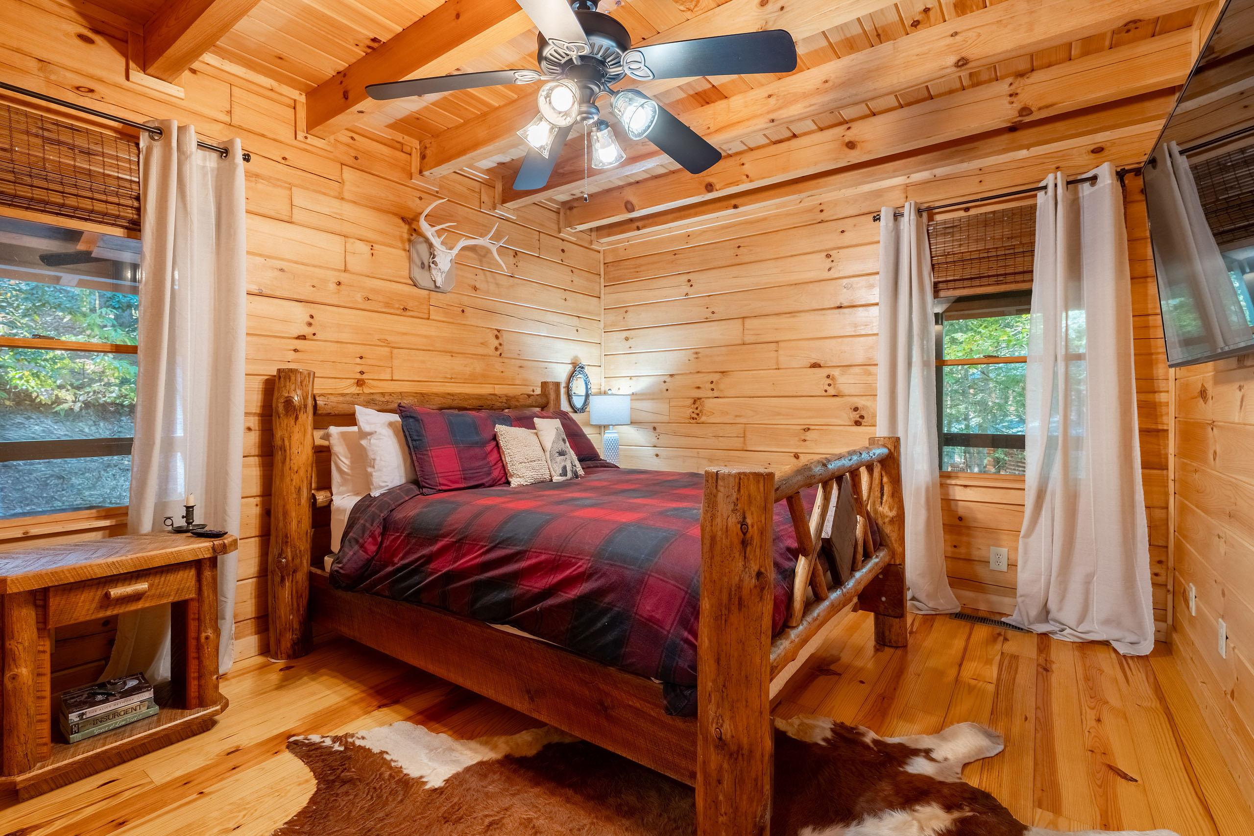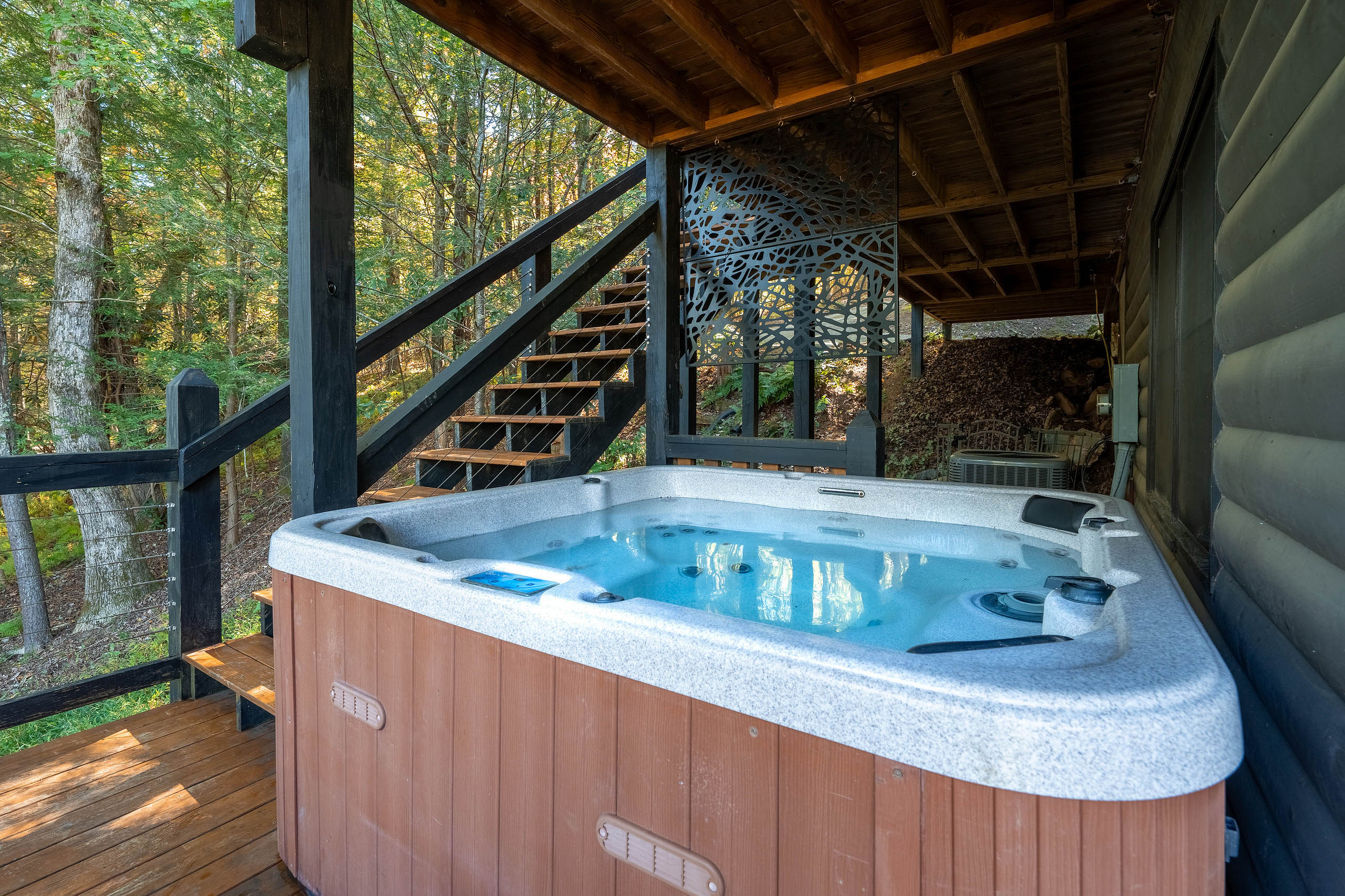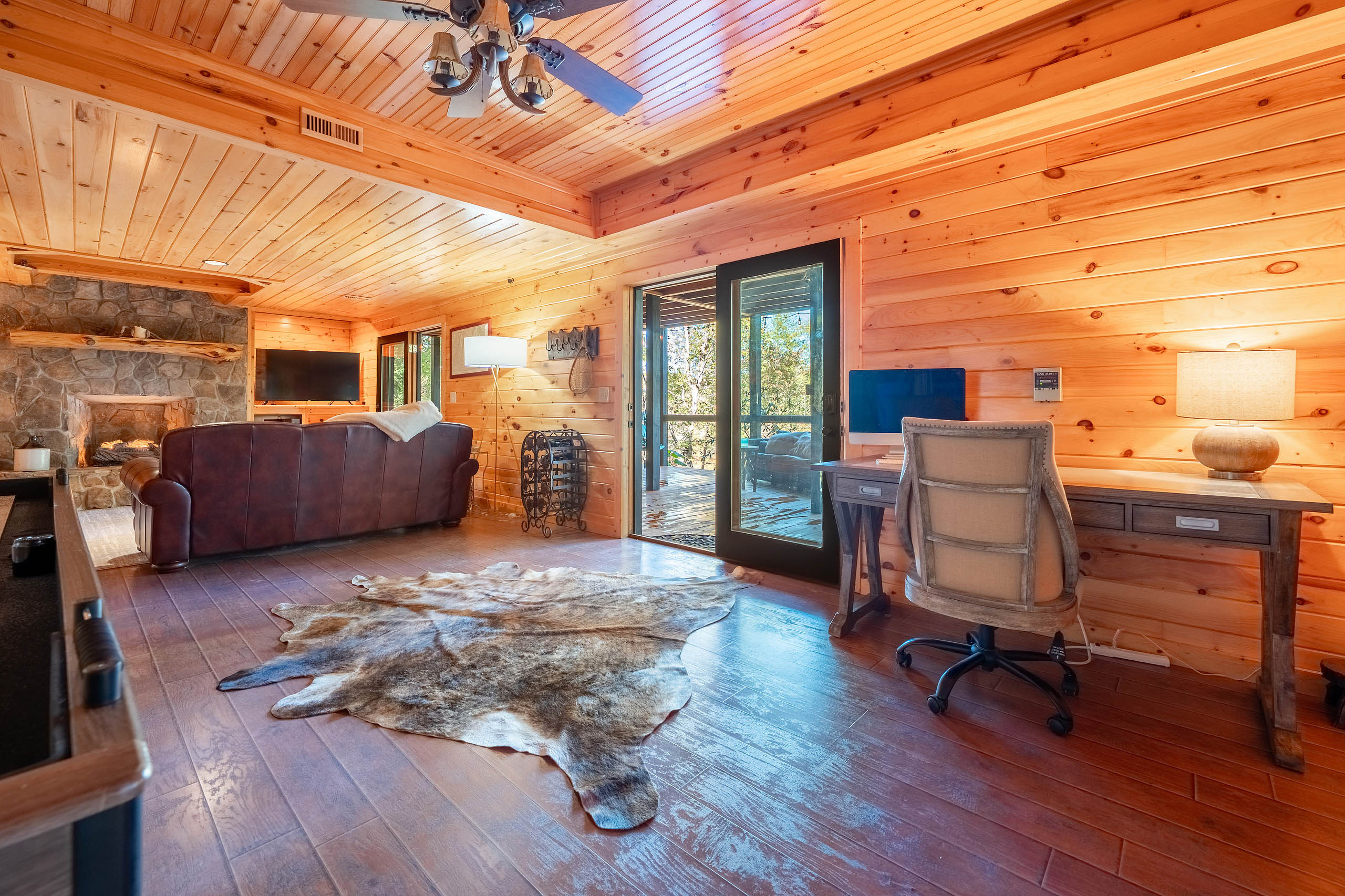 Ready for your Mountain Escape!?! The Overlook is a 4 bedroom 3 bath spacious stylish cabin situated on Fightingtown Creek minutes from Blue Ridge and McCaysville. The Overlook has room for everyone! Fully equipped kitchen, 2 fire places, wrap around porches, plenty of parking, fire pit, hot tub and outdoor space galore! Bring the Anglers – trout fishing is amazing here The Overlook sits on a bend on the creek perfect for fishing, floating, wading and swimming or listening to the falls.