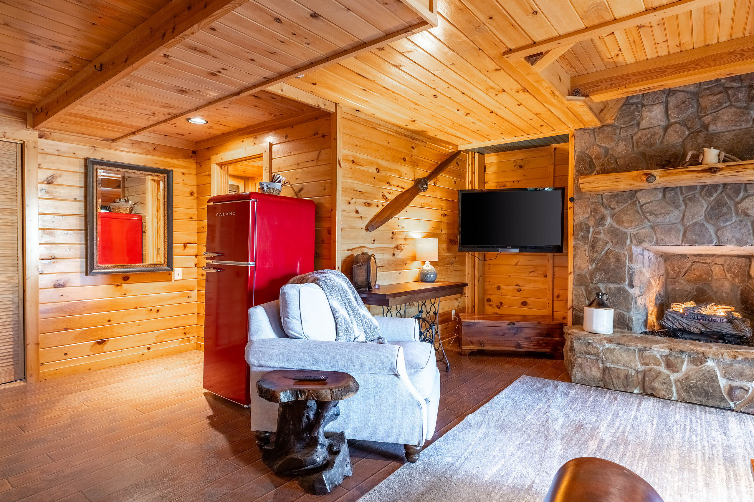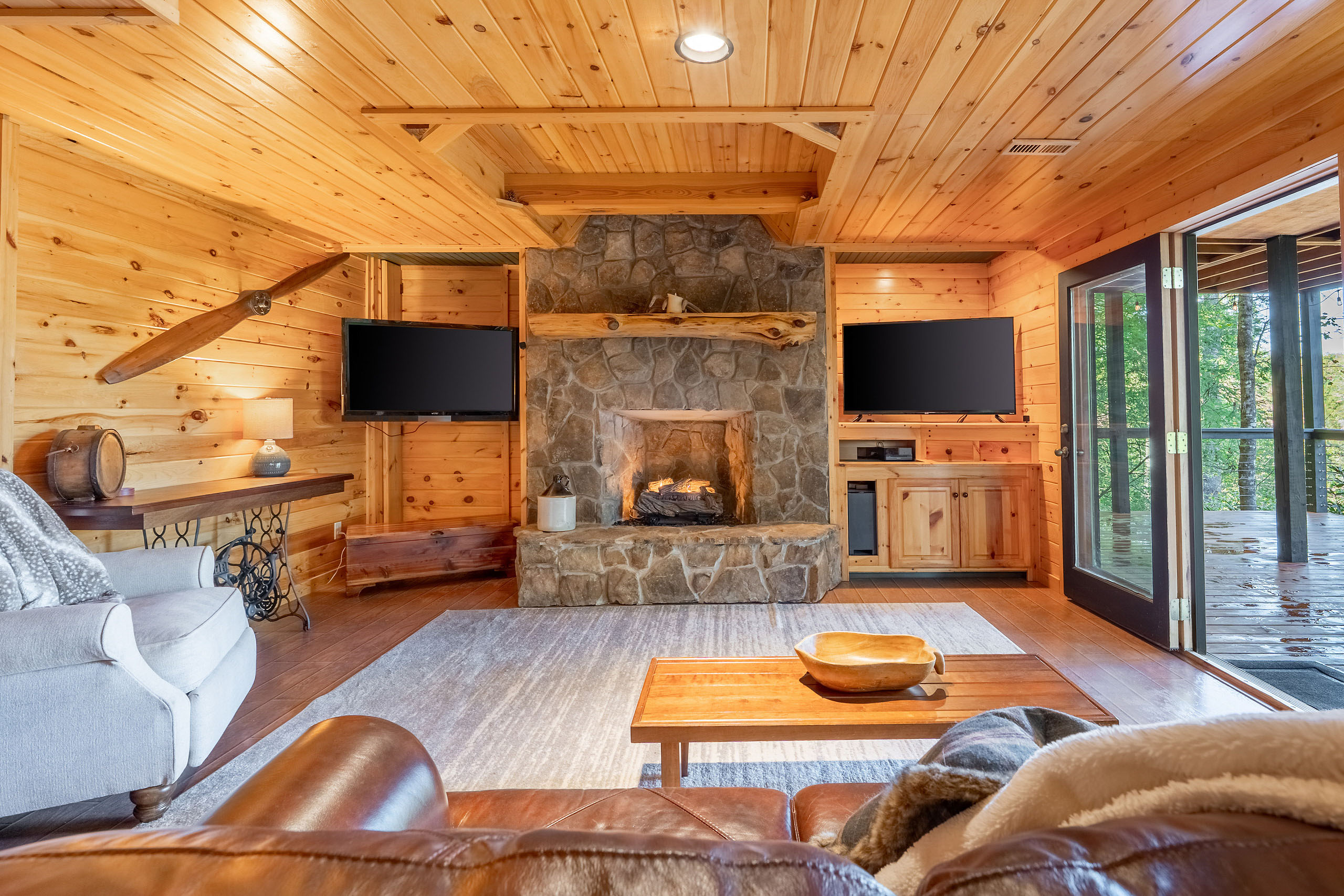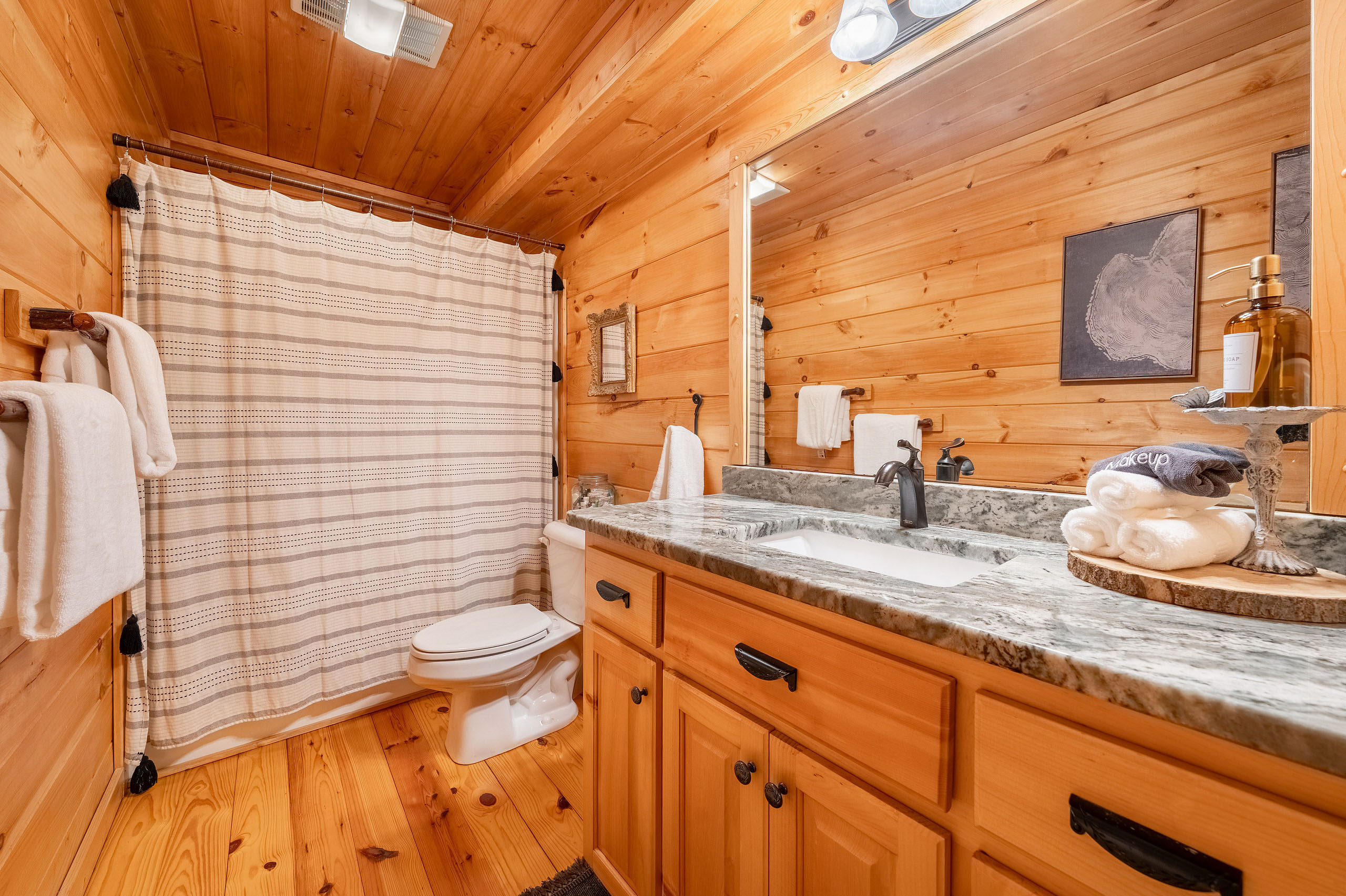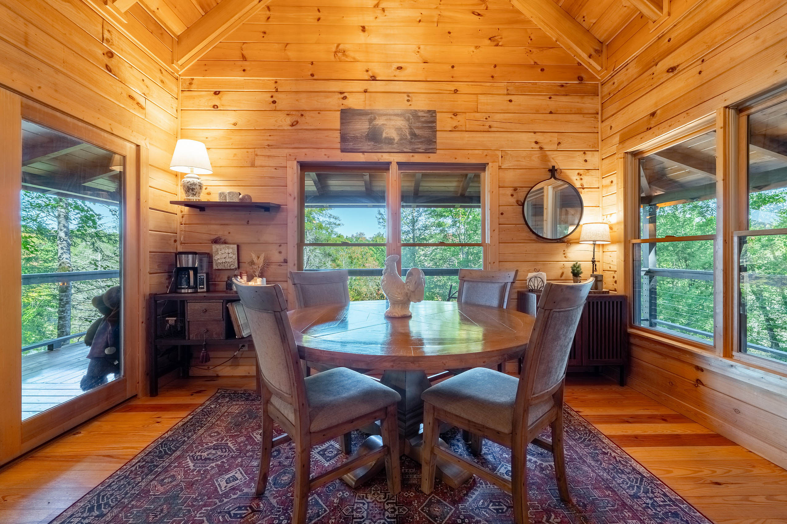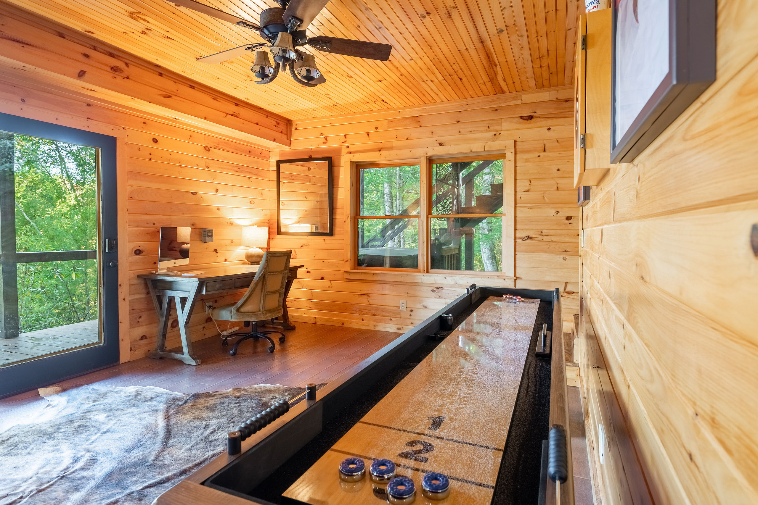 Ready for your Mountain Escape!?! The Overlook is a 4 bedroom 3 bath spacious stylish cabin situated on Fightingtown Creek minutes from Blue Ridge and McCaysville. The Overlook has room for everyone! Fully equipped kitchen, 2 fire places, wrap around porches, plenty of parking, fire pit, hot tub and outdoor space galore! Bring the Anglers – trout fishing is amazing here The Overlook sits on a bend on the creek perfect for fishing, floating, wading and swimming or listening to the falls.